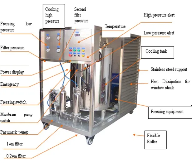 This product is our most newly opened machine which specialize in cosmetic liquid ,perfume, it freeze to the liquid of filtration;