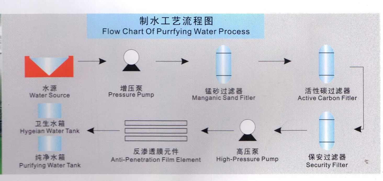 Equipment: (1)Its main body adopt American“DOW” low pressure compound film 8 Nos. with 1 meter stainless shell.
